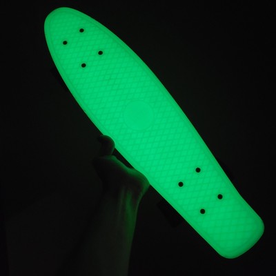 PINK COLOR GLOW IN THE DARK 22" PLASTIC BOARD. Plastic Penny Size Board 22" Pink color DECK THAT GLOWS IN THE DARK. WHEELS CLEAR LED MULTI COLORS. WHEELS ... more CLEAR WITH IMBEDDED LED LIGHTS THEY TURN ON MULTI COLORS WHEN SPINNING 60mm 78a.
